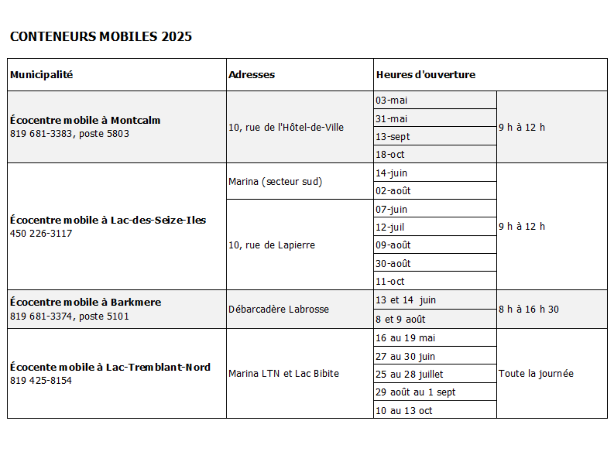 Donc, si vous demeurez à Arundel, vous pouvez aller à l’écocentre d’Huberdeau, à celui d’Amherst, ou à n’importe quel autre écocentre.