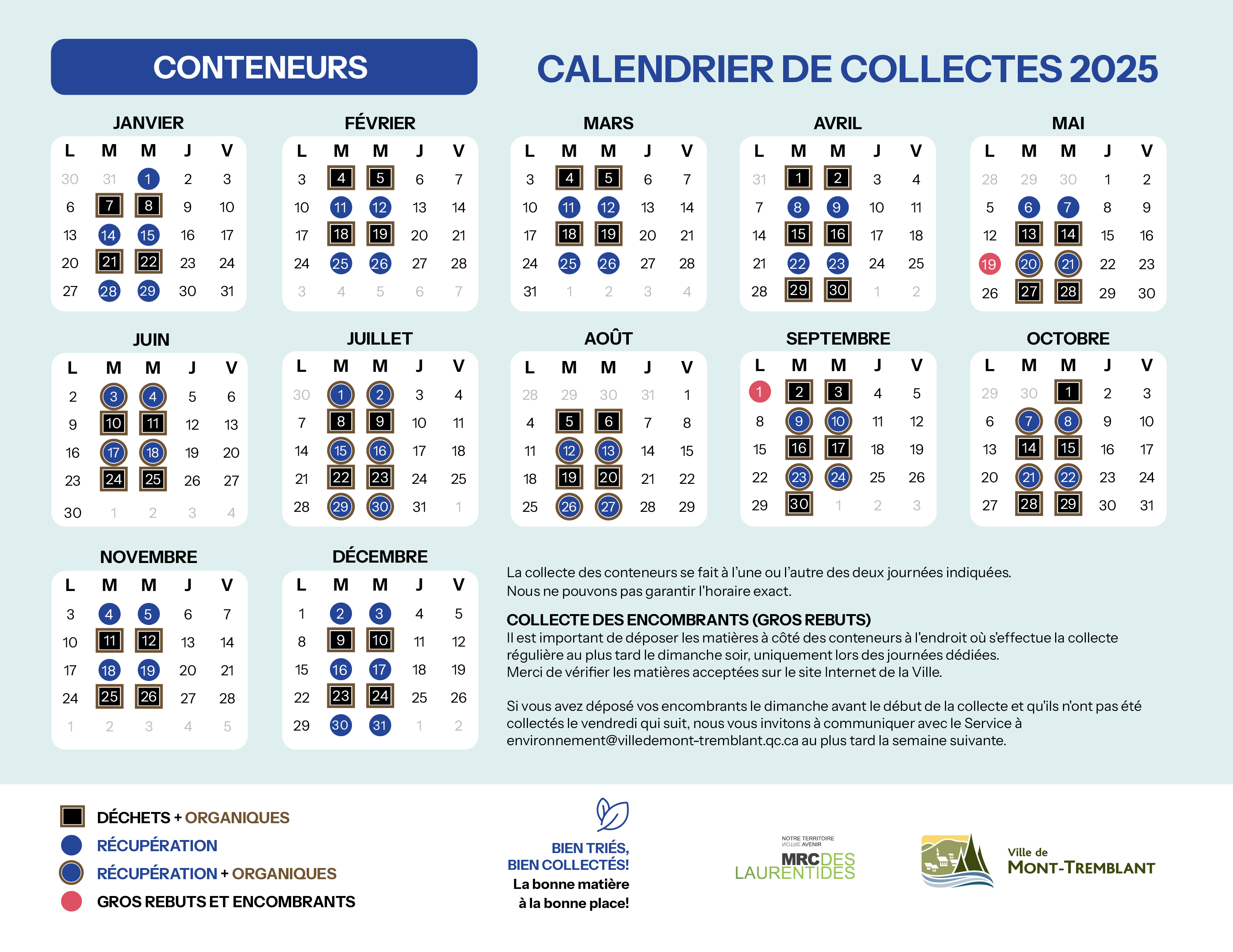 Pour plus d’information sur les collectes, visitez le site Web de la ville.